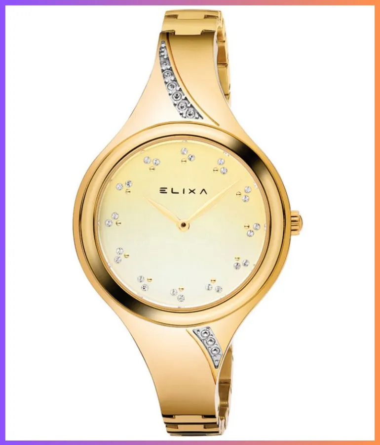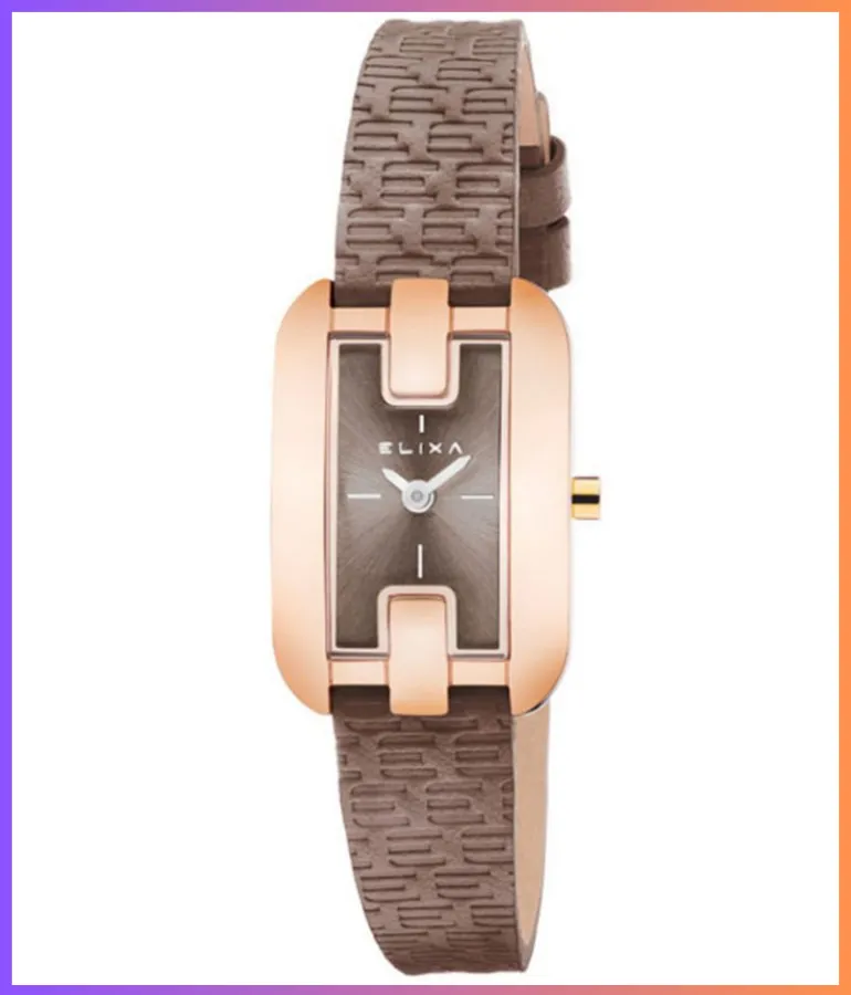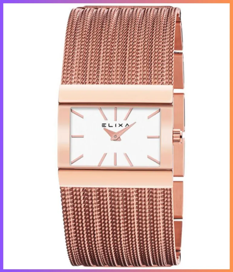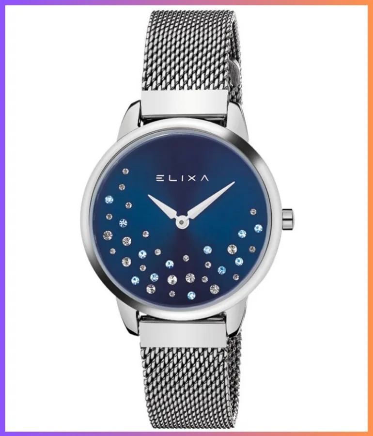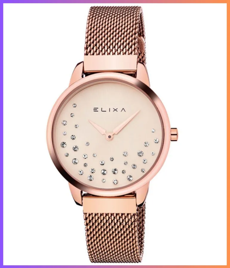 Đồng hồ Elixa chú trọng kiểu dáng thanh lịch, nhấn mạnh đường nét tối giản dễ phối đồ hằng ngày. Thương hiệu ưu tiên các gam màu kim loại và pastel, tạo cảm giác tinh tế khi đeo. Tỷ lệ vỏ, càng và dây được cân chỉnh để ôm cổ tay nữ giới.