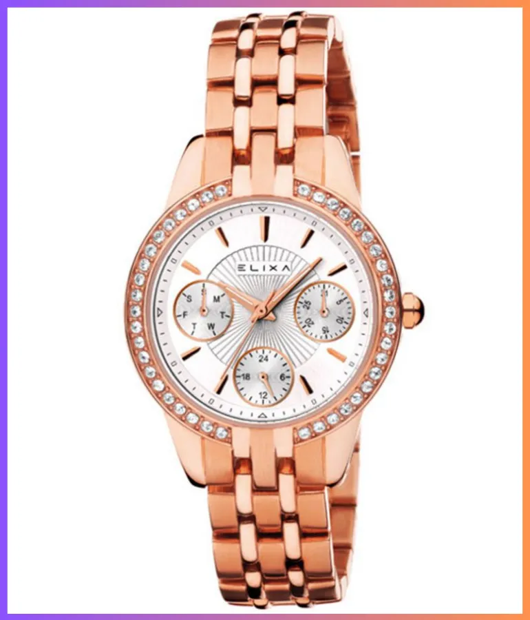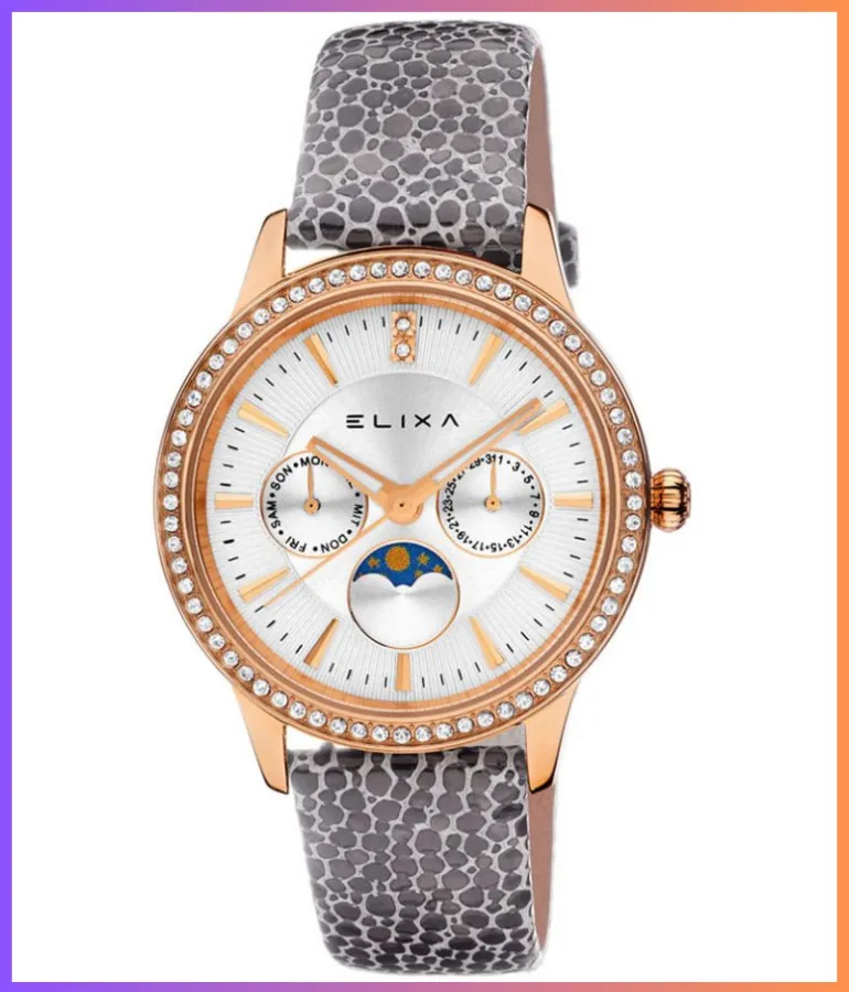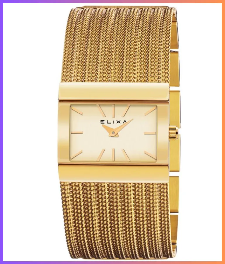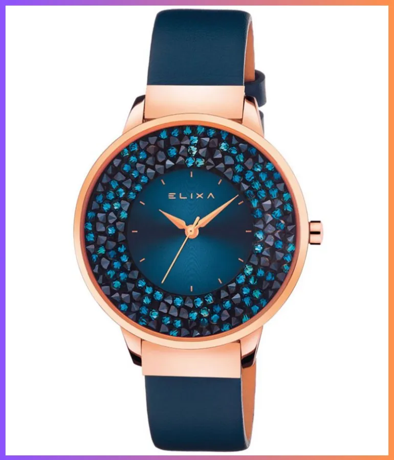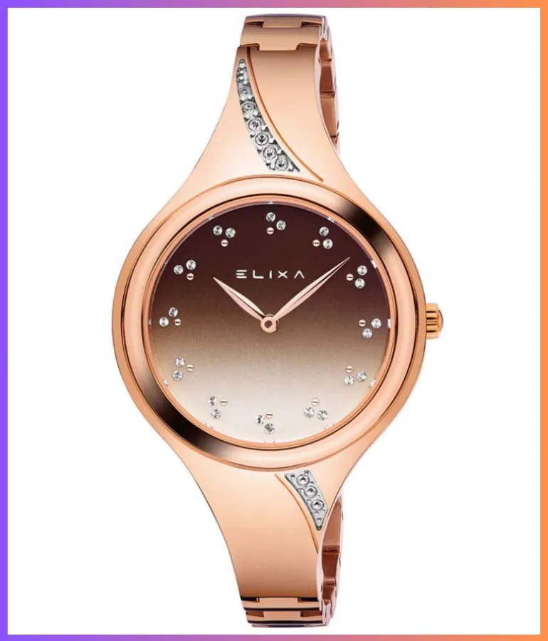 Đồng hồ Elixa chú trọng kiểu dáng thanh lịch, nhấn mạnh đường nét tối giản dễ phối đồ hằng ngày. Thương hiệu ưu tiên các gam màu kim loại và pastel, tạo cảm giác tinh tế khi đeo. Tỷ lệ vỏ, càng và dây được cân chỉnh để ôm cổ tay nữ giới.